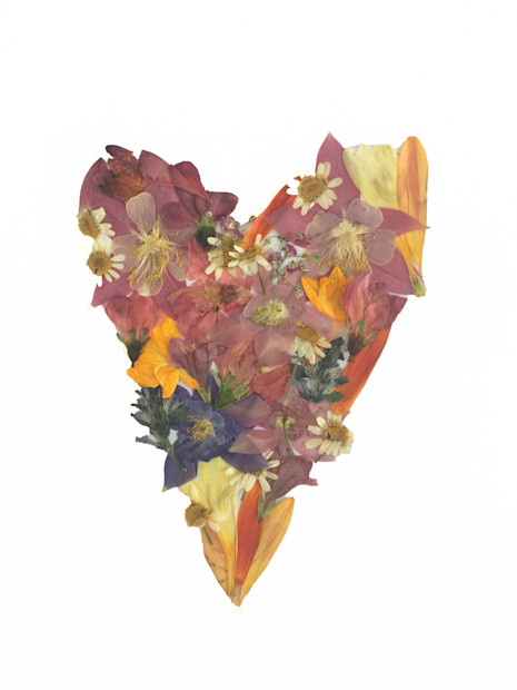 Presse die Blumen mithilfe ein paar schwerer Bücher einige Tage lang. Ordne die nun flachen Blüten in Herzform auf dem weißen Karton an. Du kannst einen Klebestift zur Befestigung verwenden. Nun musst du dein Kunstwerk nur noch einrahmenn verpacken und verschenken.
