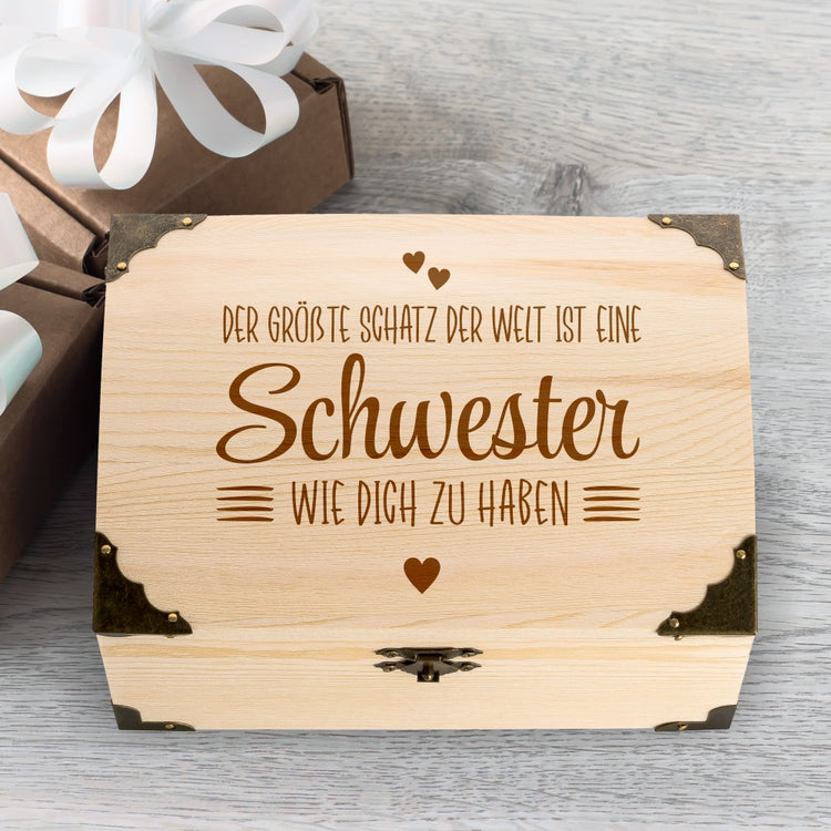 Schatztruhe mit Gravur "Der größte Schatz der Welt ... Schwester"Normaler Preis €22,99 EURVerkaufspreis €22,99 EUR Normaler PreisStückpreis / pro -